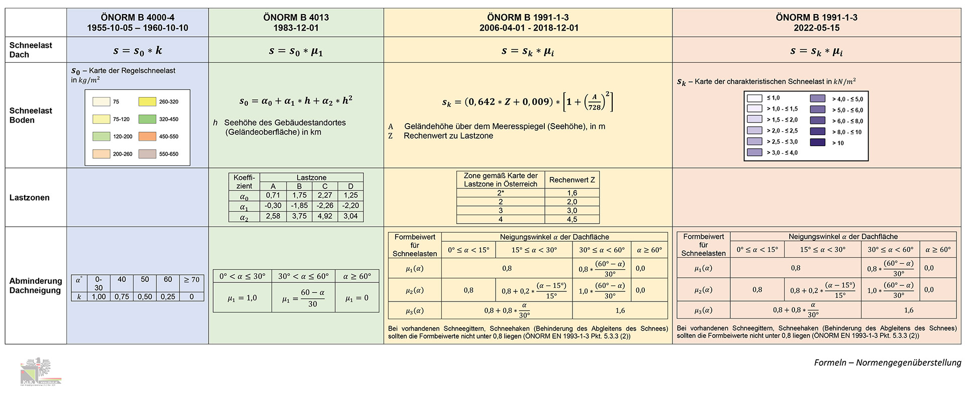 Die Ermittlung der normgemäßen Schneelast auf Ihrem Dach ist von mehreren Faktoren (Ausgabe Norm (Baujahr ihres Gebäudes), Schneelastzone, Seehöhe, Dachneigung, …) abhängig. Durch diese Faktoren und die entsprechenden Formeln und Karten der jeweiligen ÖNORMen (siehe Schneelast ÖNORMen) wird die charakteristische Schneelast für Bauwerke berechnet.